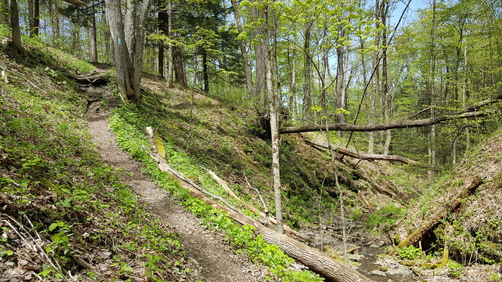 March. The weather forecast was lovely for today, and Erwin was planning on joining me for another section hike along the North Country National Scenic Trail (NCT). Unfortunately for him, he remembered he had a dentist appointment, so he went to get tortured while I ventured out solo. For this out-and-back hike, I left my car at the shoulder parking area at the southern crossing of Shackham Road, and headed east. I hiked east until I reached Chickadee Hollow Road, then returned to the trailhead via the same route, for a roundtrip total of 7.7 miles with about 1,000 feet elevation gain. This is a little longer than I typically attempt on a school day hike, but summer vacation is coming fast, and I decided to risk skipping a shower and/or laundry to fit this hike in. I made it back in plenty of time and it was SO worth it.